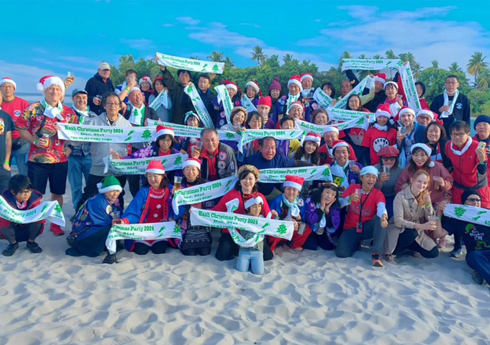 会旗は受付けの背後に、横断幕は全員集合撮影の最前列に、そして会場ステージ上に掲揚しました。