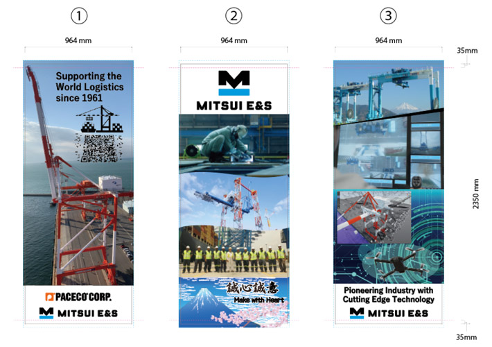 製品や仕事中の写真をプリントし、企業様への関心が高まる特注タペストリーを3枚製作いたしました。