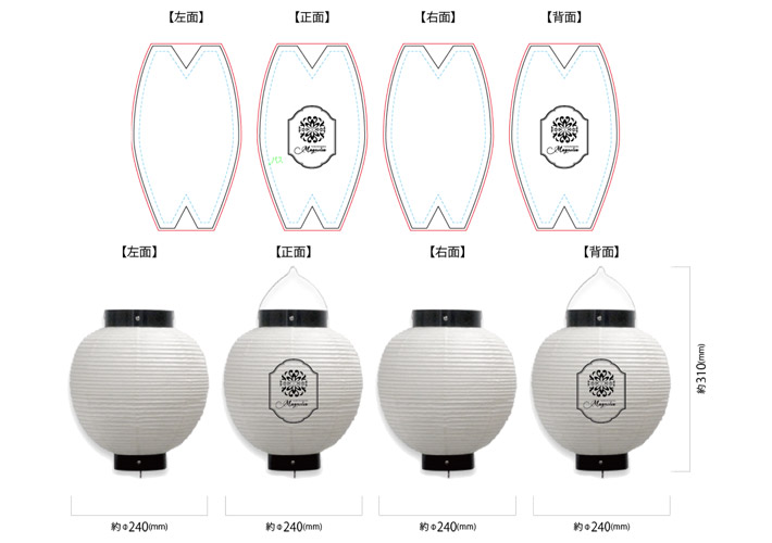 今回は、お祭りやイベント会場の頭上に吊るす装飾用提灯に人気の9号丸型提灯にてフルカラー制作を行いました。