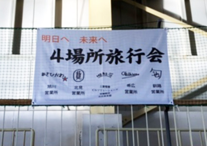 3×4サイズのシステムパネルにメディアを取り付け、横幅が3mを超える大型サイズのバックパネルとなっております。