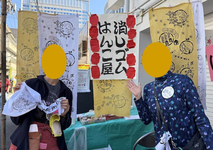 13号丸型提灯は、店舗ロゴとクリームソーダや女性のイラストが入ったデザインにて、尺丸型提灯はシルバーリングのイラスト入りで指輪作り体験をアピールするデザインにて、それぞれ名入れ制作を行いました。