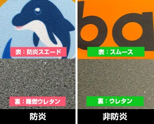 - 【防炎生地】表:防炎スエード、裏:難燃ウレタン