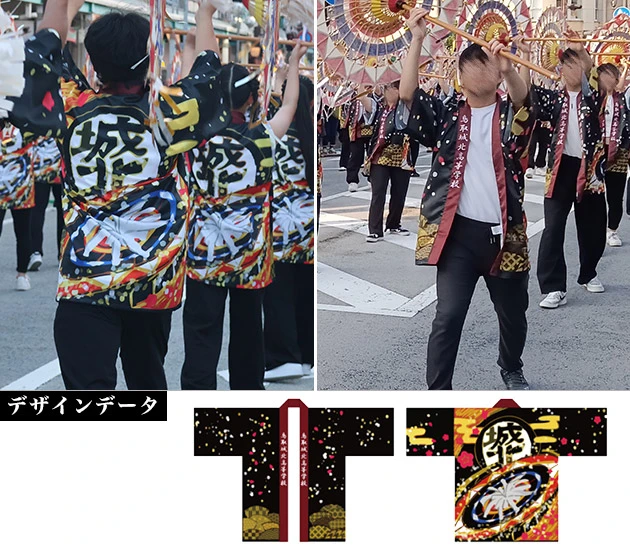 当ページでは当、オリジナル法被製作工場にてご注文頂きました、法被事例の一部となりますがご紹介させて頂いております。デザインに悩まれた際や特注製作の方法に悩まれた際などは是非、事例をご参考頂けますと幸いでございます。尚、法被のオーダー作成に悩まれた際には当店にはお客様のニーズに合わせた提案が可能な激安・格安販売に特化した専門スタッフを常駐いたしておりますのでお気軽にご相談くださいませ。