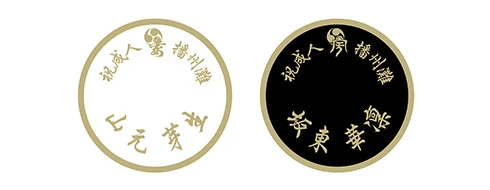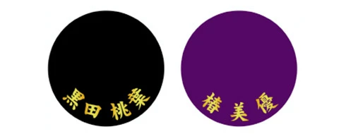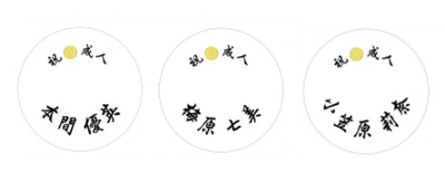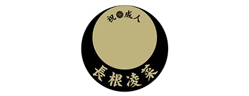 今回は男女問わず人気の高い直径106cmの白傘に、黒と金の配色が高級感をもたらすベタ地デザインを名入れいたしました。闇夜に浮かぶ満月のような金色の円の中に、「祝成人」の文字と家紋をプラスしたハレの日に相応しいデザインです。全身を引きで撮った記念写真の中でも、艶やかな振り袖姿に引けを取らない存在感をもたらします。