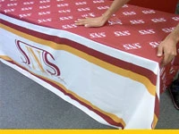 - 展示会・説明会・イベントのブース装飾のテーブルクロス製作に